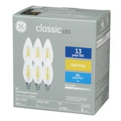 GE Soft White 60W Replacement LED Decorative Clear Blunt Tip Candelabra Base BC Light Bulbs (6-Pack)
