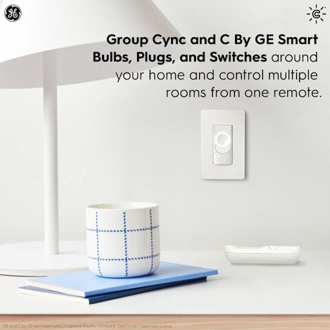 The C by GE Soft White Smart Bulb and Smart Dimmer Remote unlock smart control from anywhere in your house. Use the Dimmer Remote to turn your bulb on and off or dim and brighten to create the perfect dinner time or movie night scene. The remote fits comfortably in your hand and its magnetic back attaches to any metal surface for safe keeping. Use the C by GE app to set scenes and automations, so you can wake up to a dim white light and avoid coming home to a dark house. Pair your remote and smart bulb with C by GE smart plugs and smart switches to enable whole room and out of home control and to unlock voice control with your Google Home or Amazon Alexa device.
