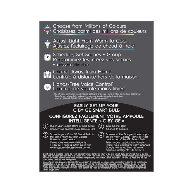 Replace traditional indoor floodlight bulbs with C by GE c-sleep smart LED BR30 light bulbs in your bedroom for ideal lighting day or night. For simple set up that does not require an additional hub or bridge, pair your c-sleep bulb directly with a Google home device. Use the Google assistant to control lights with your voice and adjust your lights away from home. Pair with the c-reach bridge (not included) and enable voice and out of home control through Alexa-enabled devices. Enable voice and lighting control away from home by pairing your Tunable White/C-Sleep bulb with the C by GE C-Reach smart bridge, smart plug, or smart switch (sold separately) and an Amazon Alexa or Apple HomeKit device.