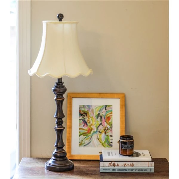 The beautiful white gimp trim on the scallop bell lamp shade makes it a standout piece. The Monay Shantung fabric will brighten your space. This remarkable shade makes an exquisite addition to your existing furnishings.