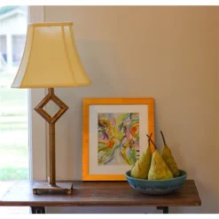 The cut corner rectangle bell lamp shade is a classic design. The layered trim on the top and bottom beautifully accentuates the vertical trim highlighting the subtle curve of the shade.