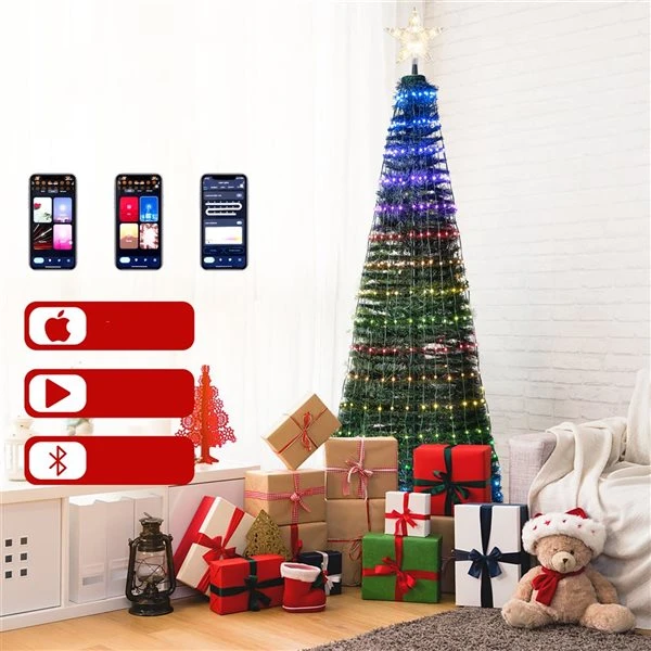 Make everywhere fill with a strong festival atmosphere! Our pre-lit pop-up Christmas tree can be a gorgeous yard decoration to celebrate Christmas while spreading joy and happiness to every corner. It comes with 282 RGB LED lights on the light strings and there exists a variety of endless changing lighting modes for you to choose from, making the Christmas night full of joy and laughter. More than that, unlike normal lighted Christmas trees, the lighting effects of our Xmas tree can be changed with a “Flash Lights” APP via Bluetooth, bringing you to enter the world of smart lighting. Thanks to the super-convenient pop-up design, it is easy to set up, and all you need to do is install the supporting frame and pull up the Xmas tree, then install the light strings. Also, it can be folded into a compact size for convenient storage when not in use. This waterproof Christmas tree can be a perfect addition to any indoor and outdoor area!