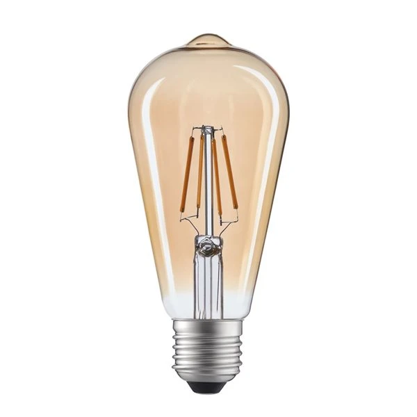 Lasting five times longer than a traditional incandescent bulb, this 4W Signature Edison Bulb Dimmable Amber Glass LED is the perfect choice for your home. This energy-saving bulb gives off 400 lumens of warm white light. The bulb itself has a decorative design given the elongated shape with a tubular end. This bulb will pair well with wall-mounted lamps and ceiling lights with a transparent shade or open frame design.