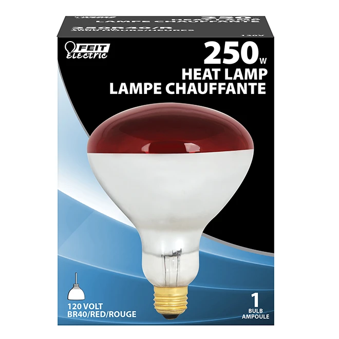 Use a Feit electric bulb for general household or business needs. The incandescent light bulb uses 250 watts to produce a red light. Heat from this bulb prevents prepared food from cooling and warms indoor rooms during winter. The bulb comes with a 1-year warranty.