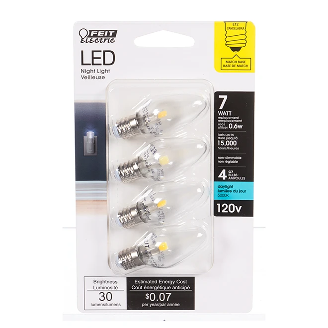 Feit Electric LED Bulb – C7 – 0.6 W – Day Light – 4/Pack