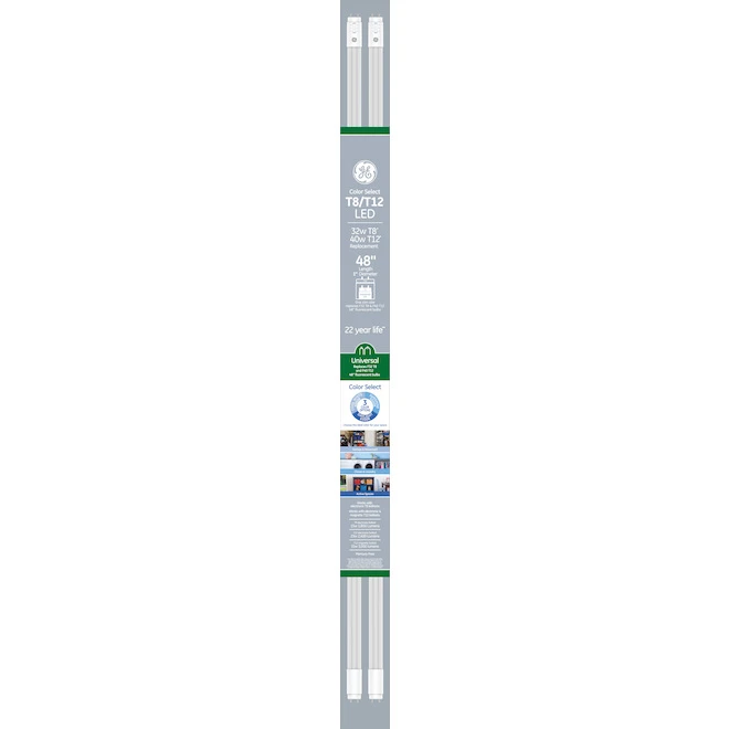 GE Color Select LED Fluorescent Tube – 48-in – 32 W – T8/T12A – White – 2-Pack