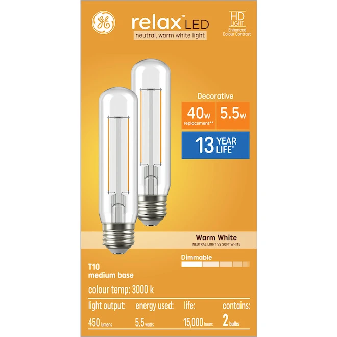 Be the first to review “GE Lighting 40W T10 Dimmable Warm White LED Bulb, 2-Pack” Cancel reply