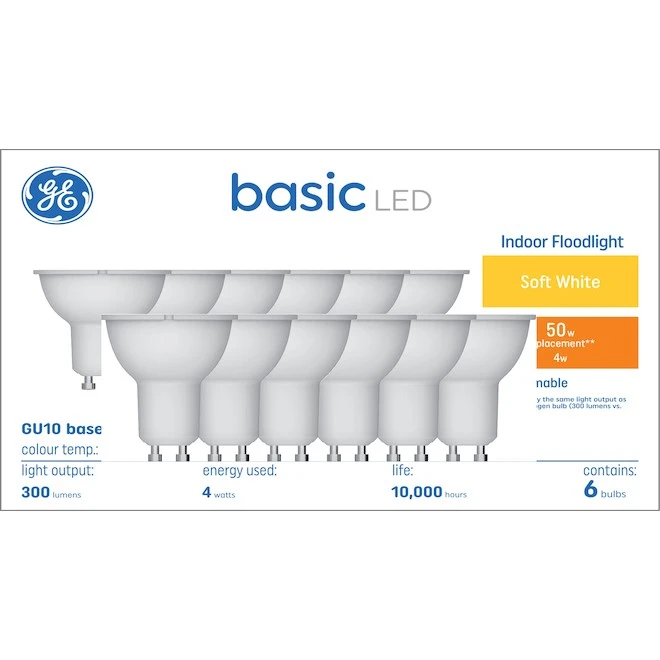 GE Lighting GU10 50W Floodlight Soft White LED Bulb, 6-Pack