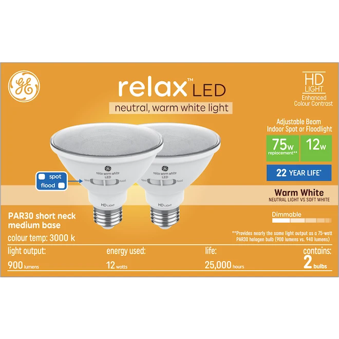 Be the first to review “GE Lighting Medium Base PAR30 75W LED Bulb 2-Pack (Warm White)” Cancel reply