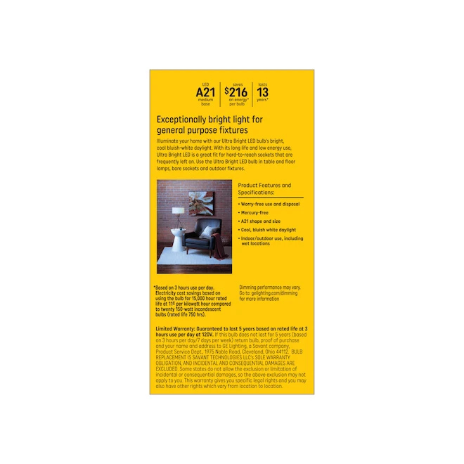 Be the first to review “GE Lighting Replacement Daylight LED Bulb A21 150W” Cancel reply
