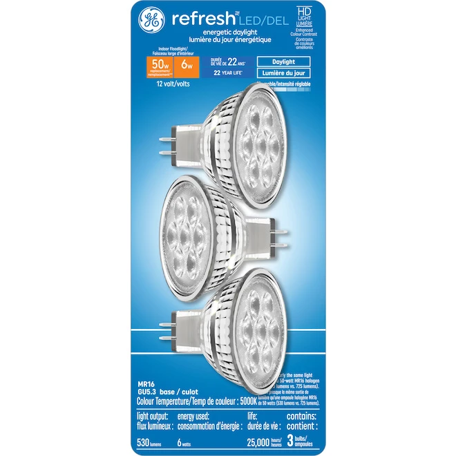 GE Refresh 50W EQ MR16 Energetic LED Bulb With GU5.3 Pin Base – 5000K – 3-Pack