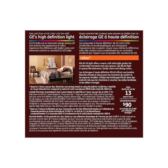 - Experience the difference with bolder colours and enhanced contrast versus standard GE LED bulbs
