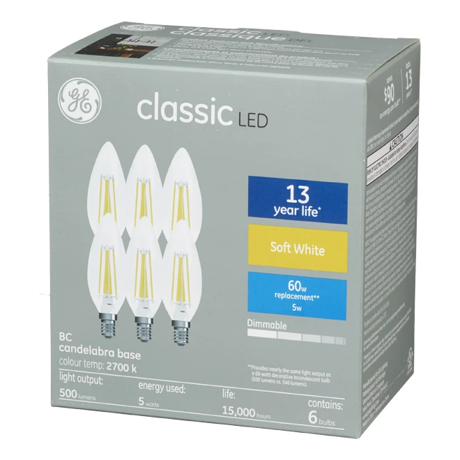 Be the first to review “GE Soft White 60W Replacement LED Decorative Clear Blunt Tip Candelabra Base BC Light Bulbs (6-Pack)” Cancel reply