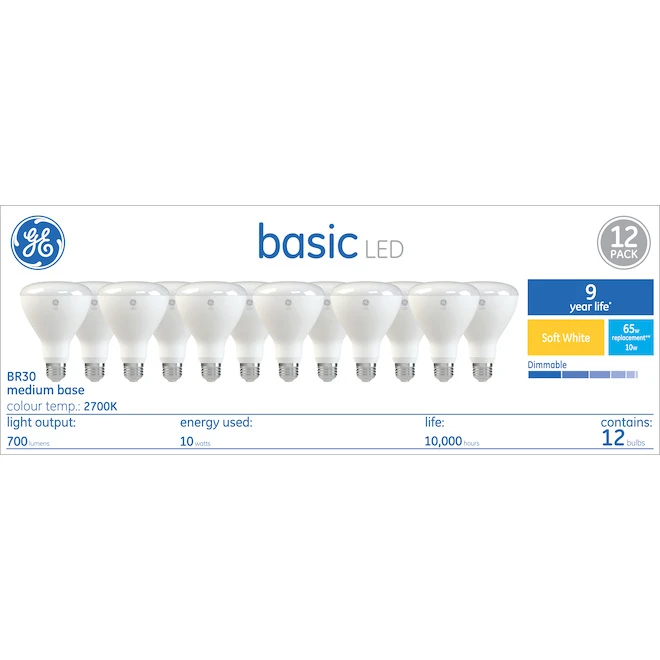 Basic Soft White LED BR30 Floodlight bulb offers outstanding energy efficiency and long-lasting performance. It offers a warm, soft light. Use this bulb in track and recessed lighting fixtures. They are perfect for hard-to-reach sockets that are frequently left on.