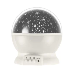 The fun and playful Celestial Space Projector LED Integrated Night Light by Globe Electric offers an exciting experience for the entire family. With an outer space theme, this rotating projector is perfect for all ages and would be ideal for a bedroom, playroom, or any dry location where you wish to explore the cosmic space above. The celestial projector comes with four interchangeable lenses – choose between a galactic, lunar, zodiac, or starry night illumination! With different lighting options you can pick the light you want by using the three buttons located on the base of the night light projector. Choose between a warm white light or a color changing light and choose if you want the projector to rotate or not. You and your family will never run out of ways to have fun and enjoy this ambient lighting experience throughout your home. This light is user-friendly and can be operated with either a USB cable (included) or by inserting three AA batteries (sold separately).