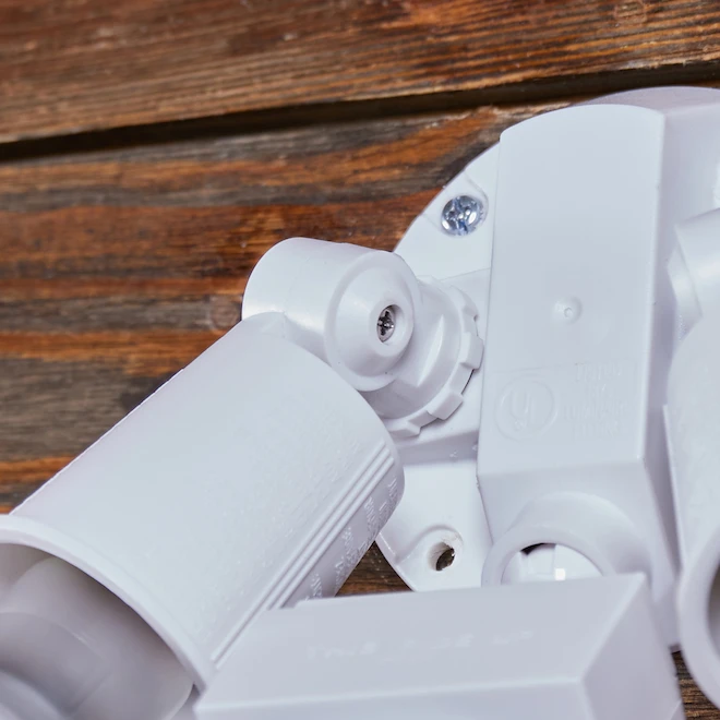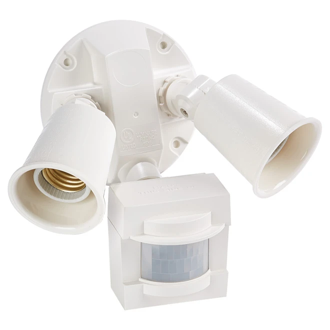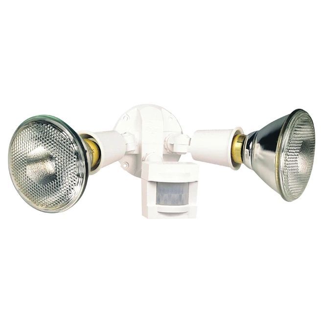 Help keep your property protected with the Globe(R) Motion-Activated Dual Halogen PAR 38 Security Light. This security lamp features a 110-degree motion sensor with a variable detection range of up to 60′ (18.29 m). The adjustable light timer can be set to 1, 5 or 10 minutes for optimum control. This security light can be mounted from the wall or eaves for versatile installation. It uses two halogen PAR 38 bulbs (not included) and is LED bulb compatible.
