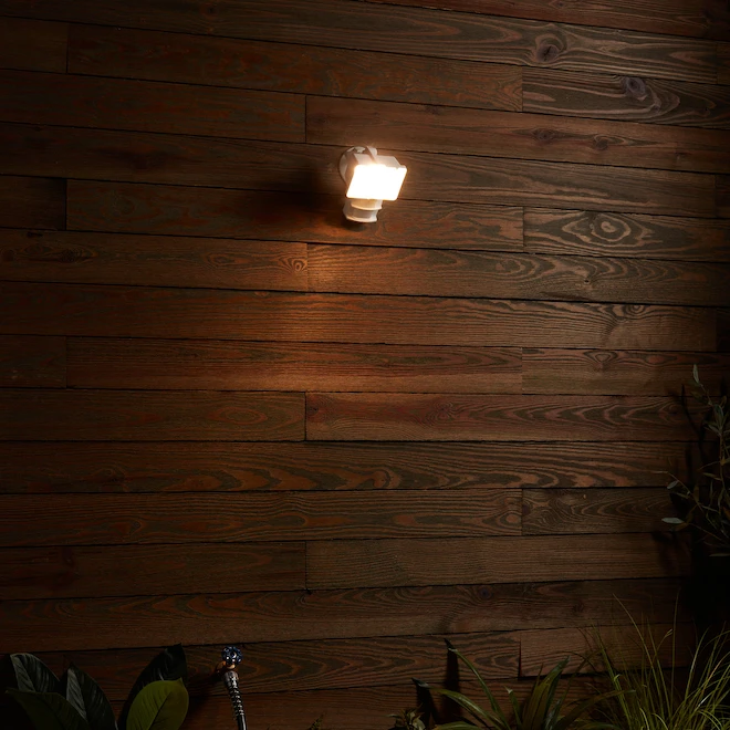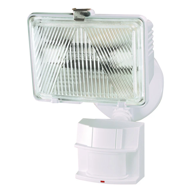 250-W halogen light (bulb included), 180º detection zone, up to 70 ft. range, selectable light timer 1, 5 or 20 min. Adjustable detection sensitivity, automatic power outage reset. 10-year warranty. Die-cast aluminum construction, Energy Star approved.