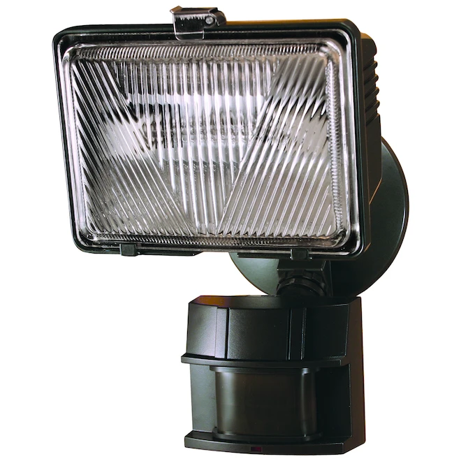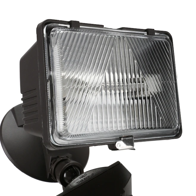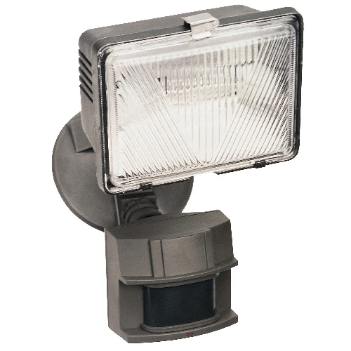 250-W halogen light (bulb included), 180º detection zone, up to 70 ft. range, selectable light timer 1, 5 or 20 min. Adjustable detection sensitivity, automatic power outage reset. 2-year warranty. Die-cast aluminum construction. Energy Star approved.