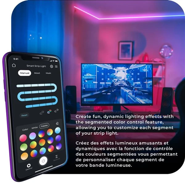 - CUSTOMIZABLE COLOR CONTROL: With the segmented color control feature, you can customize up to 20 light segments to display different colors creating fun and dynamic lighting for every moment, vibe, and room.