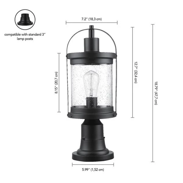 With a classic shape and seeded glass shade, the Zeke Outdoor Collection by Globe Electric offers gorgeous rustic vintage vibes. A vintage-inspired bulb would add the right embellishment to make this piece truly a work of art. The matte black finish complements all outdoor decor and showcases your bulb in just the right way. This lamp post light fixture has such clean lines, it will make a grand finishing touch to your walkway or driveway. To create a finished look, pair this piece up to have symmetry at your front door or at the end of your driveway.
