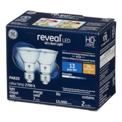 GE Reveal HD+ Colour-Enhancing 50W Replacement LED Indoor Floodlight PAR20 Bulbs (2-Pack)