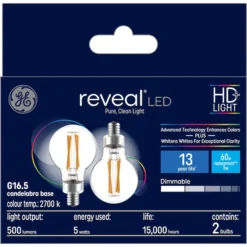 GE Reveal HD+ Colour-Enhancing 45W Incandescent Indoor Floodlight R20 Light Bulb (2-Pack)