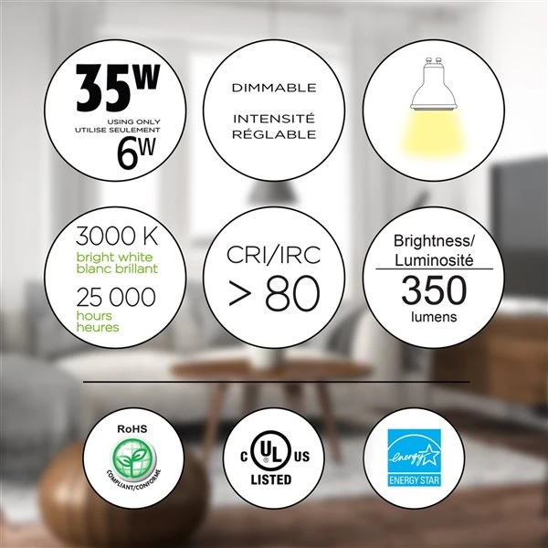 Be the first to review “Luminus 35 Watt Equivalent GU10 Dimmable Bulb 3000K Bright White (6-Pack)” Cancel reply