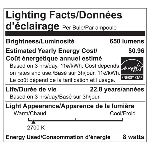 - Colour temperature (Kelvin): 2700 K (warm white)
