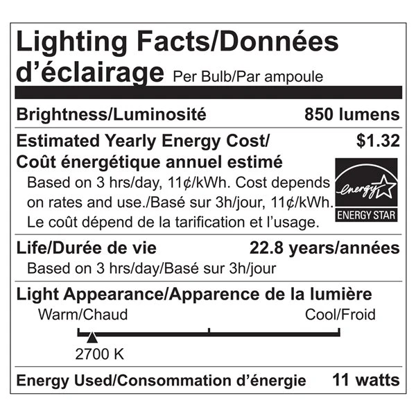 - Colour temperature (Kelvin): 2700 K (warm white)