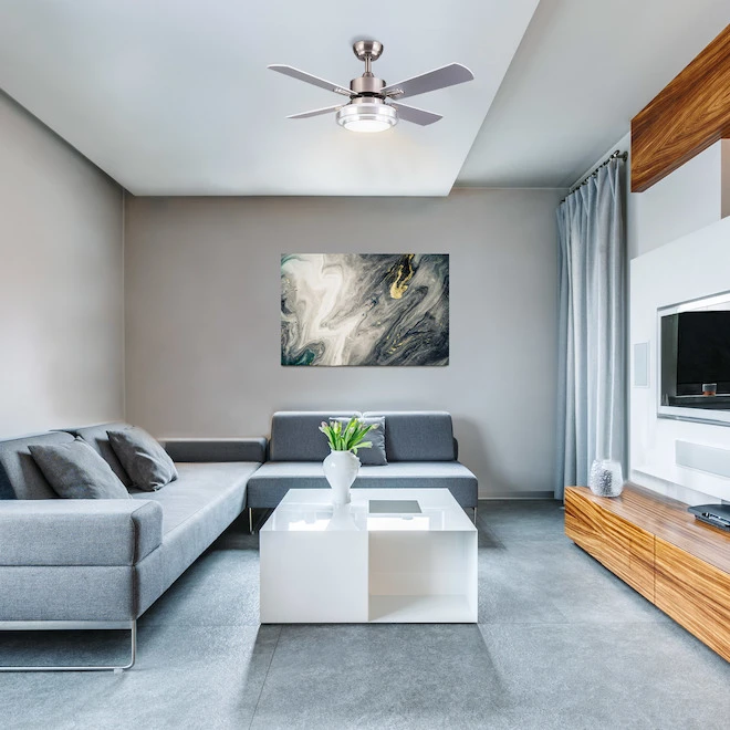 Lumirama Beta Ceiling Fan – Satin Nickel – 4 Blades -52-in Dia