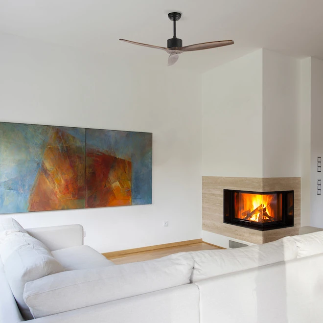 Improve the look of an interior room with this Lumirama Gemini ceiling fan. The ceiling fan allows for convenient activation and deactivation with remote control. Its coherent and compact design fits medium and large spaces. The 3-blade ceiling fan delivers a distinct profile and look with its mix of brushed steel and wood. It measures 52 in L x 13 3/4 in H x 52 in W.