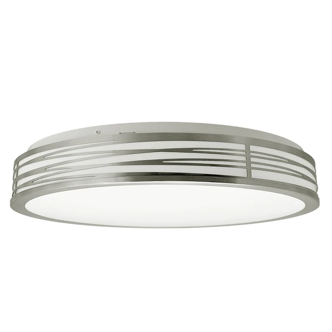 This elegant yet subtle flushmount by Project Source will complement any decor. This dimmable 19-inch light with 3 CCT functions (3000 K – 4000 K – 5000 K) provides good luminance. It has a brushed nickel decorative ring with a white plastic shade with integrated led light.