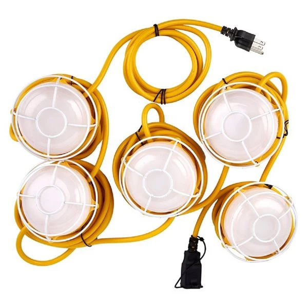 These LED integrated string lights are designed to withstand the rigours of a construction sites while still being light weight for regular residential use. Perfect for professionals and DIYers, these lights can be used indoors or outdoors to provide temporary lighting on job sites, garages, basements, or backyards. Each lighting head consumes the equivalent of 40 watts of power making them energy efficient while the durable integrated LED lights are designed to last for 30,000 hours. The unit is equipped with a 15-metre cord and allows you to add up to an additional 12 sets to light larger areas.