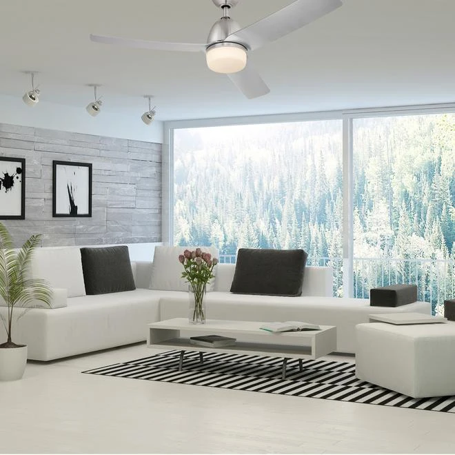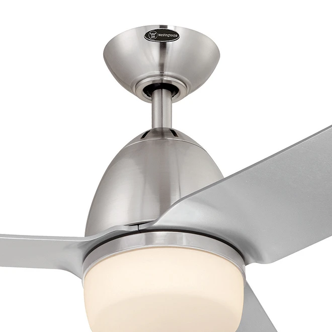 Cool your space with this Westinghouse ceiling fan. Silver thermoplastic polymer blades give this fan a sleek appearance. Reversible rotation blades deliver comfort in the winter and summer. A frosted glass shade diffuses the included Energy Star LED bulbs for a warm glow. This ceiling fan with LED light comes with a lifetime warranty for the motor.