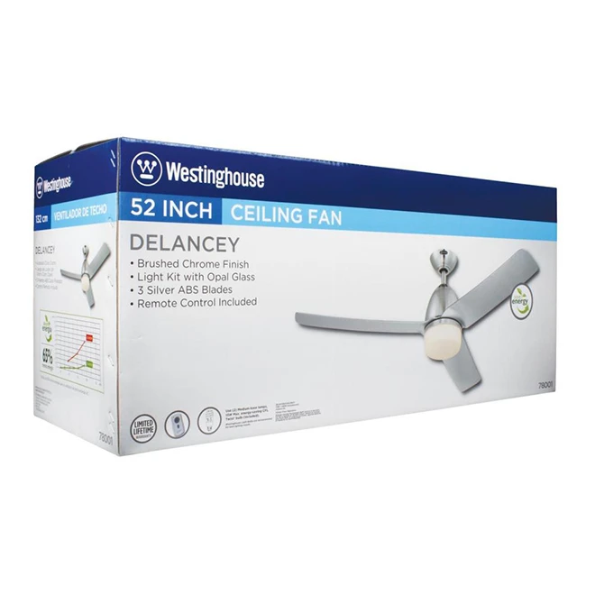 Be the first to review “Westinghouse Ceiling Fan With LED Light – 3 Silver Blades – 52-in W” Cancel reply