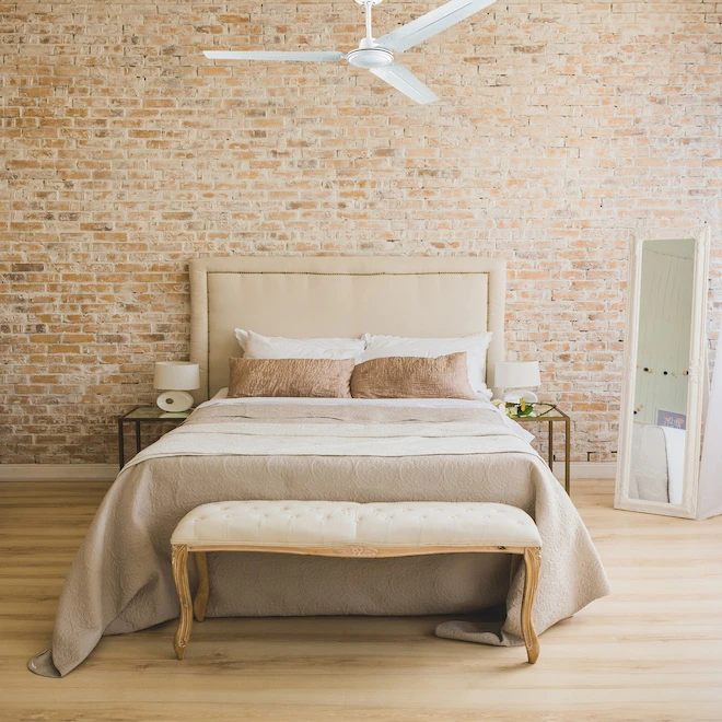 Ventilate the residential and commercial space with this Westinghouse ceiling fan. Its engine works silently for comfort. It has a remote control to toggle between 5-speed control. These industrial ceiling fan blades have a white-coloured finish for elegance.